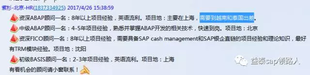 以下为例(请自行在QQ群搜索“SAP”加入一些人数多的群,几乎每周很多需到其他国家出差的项目需求):
