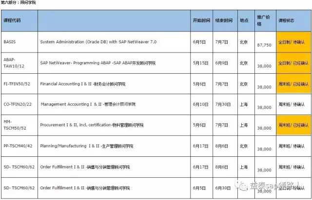 摘录2017年5月和4月SAP中国培训部的培训推广邮件: