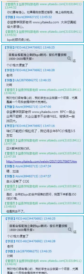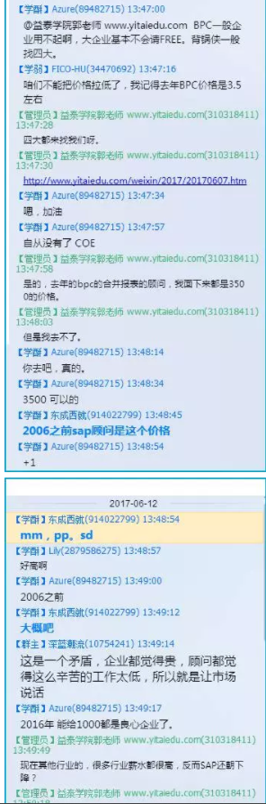我担心我今年培训的几位学员,出去做SAP BPC项目报价太低,我特别提醒他们,之前学员小沈在群中说过,她当前的月薪折合约800一天(估计在乙方做FICO顾问),还有深蓝(在学习BPC之前为一家企业甲方内部顾问),看到我以前(2011年)培训的BW顾问,签署了一个用项目收入抵扣培训费的合约,要让参加培训者,首次出去做项目不低于1500元每天的能力。他也想签署这样的合约,他只需要首次项目每天1000元就可以,其他都算我的培训费。