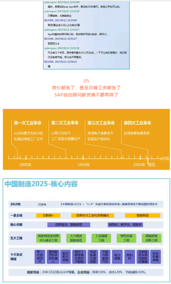 我们正处于“第四次工业革命”浪潮上,SAP是应用系统和物理系统联合的最主要的产品,过去几十年一直专注于此。2017年以来,SAP的项目明显比前几年多。因为很多工厂要智能化,自动化,减少普通工人的数量,他们要上工业机器人,但是对不起,请先实施SAP或者Oracle ERP这一类系统,否则条件还不具备。