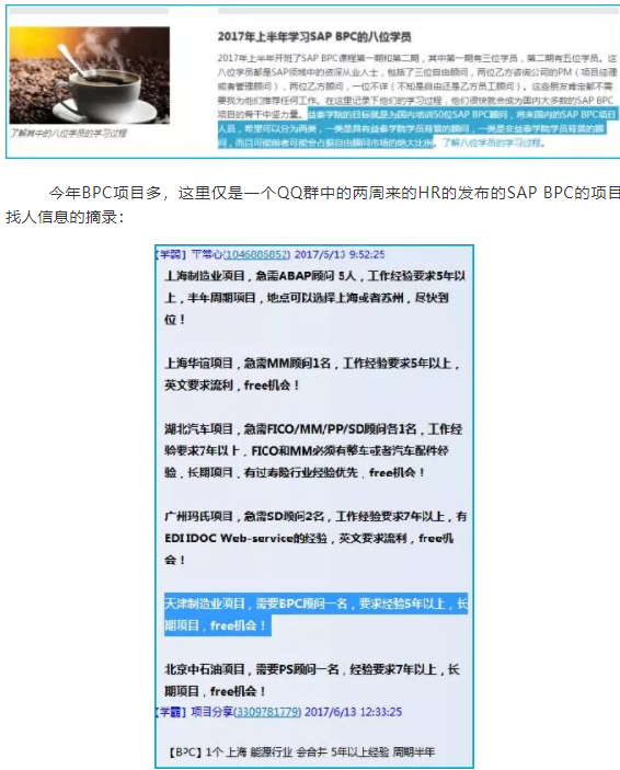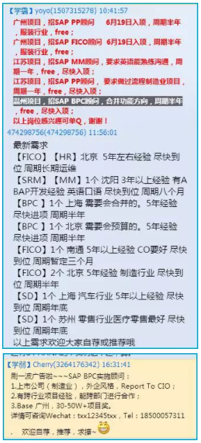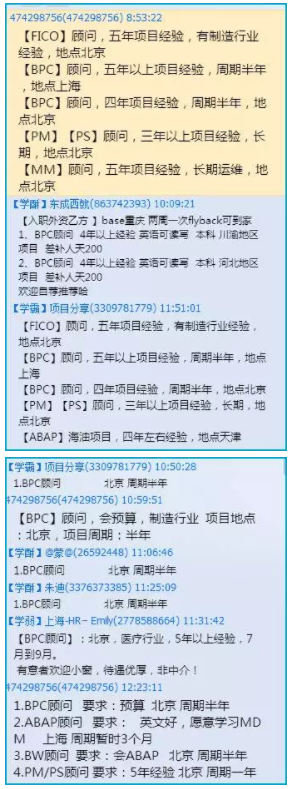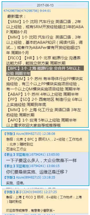 今年BPC项目多,这里仅是一个QQ群中的两周来的HR的发布的SAP BPC的项目找人信息的摘录: