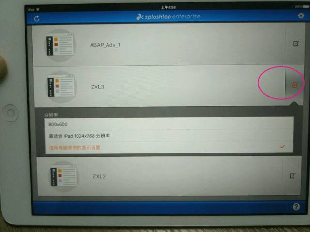 别着急去看,先点击右边的“小笔”图标,请选择“电脑本身分辨率”,这是因为一些视频录制的时候就是1024X768的分辨率,如果你采用最合适的ipad的默认分辨率也是1024X768的话,则视频播放的拖动条和播放控制按钮在屏幕最下方,因为分辨率原因就看不到了。