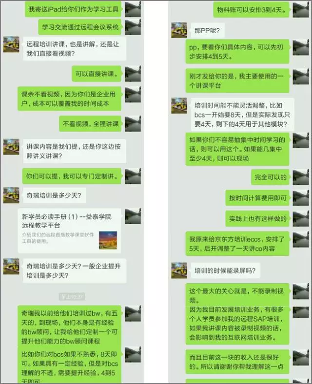 来自企业的可接受远程的培训需求。该企业有SAP的深入模块BCS财务合并,CO的物料帐,PP的MRP等深入内容的培训需要,并能高度定制化,通常这种培训如果寻找SAP公司的帮助,价格很高,而且需要多个顾问才能满足,选择我是具有良好性价比的选择。