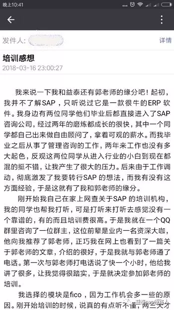 昨天晚上我收到他的这篇培训感想,在睡觉之前看了又看,今天早上起床又看了好几次。读起来,我感到作为一位职业技术培训的老师,我感到很幸福,感到我的工作对学员是有帮助的,我很喜欢这份工作