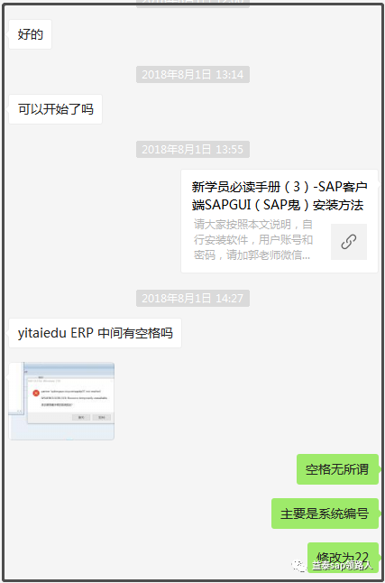 Johnson58去年8月左右想学习SAP,而且试学了一小段时间,但是后来没有继续学习。时隔一年之后,他联系我想重新开始试学SAP课程。我电话他去年试学后为何后没有继续学习的原因,他说他换了一个新的超市的工作,刚开始工作比较忙,无法抽取太多时间学习。现在,他还是在超市工作,每天需从下午1点开始工作,到晚上11点结束工作。他的学习时间和条件远远没有在长沙培训中心集中学习的条件好。所以我希望在长沙的同学要把全部时间集中精力好好学习。因为你们的条件是那么好。