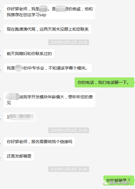 Johnson83是学员中年龄偏大的群体,之前从事滴滴司机的工作,比较辛苦。我建议他学习FICO模块,因为他的大舅哥也是从事SAP领域的FICO自由顾问。未来的工作有家人的帮助更加容易一些。