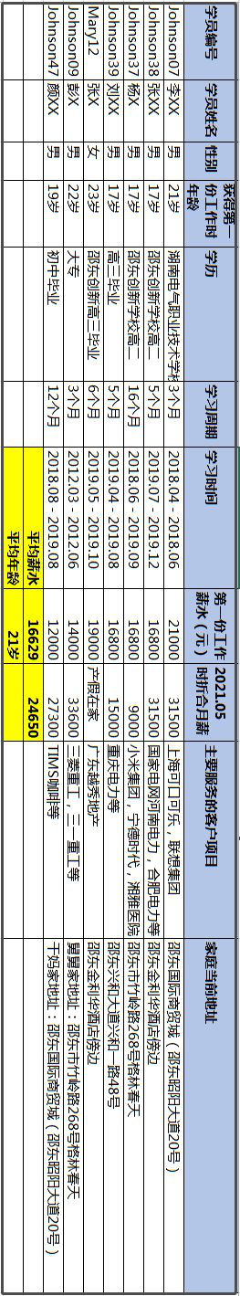 截止目前2021.05月,来自湖南省邵东县城来学习SAP ABAP企业级高级应用程序开发的同学,学习完毕他们的第一份的工作的薪水情况,平均薪水达到了16914元。这还在他们的平均年龄在21岁,学历并不足够理想的情况下达到的。