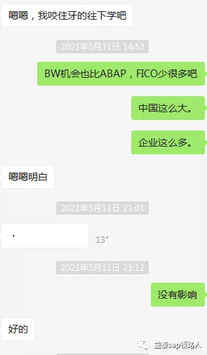 因为每家公司都非常诚恳的邀请他加入,比如1.7万元的那家的面试官还是我的以前的BPC合并的学员,同Johnson135说,尽管他没有学习BPC合并,只熟悉BPC预算,但是他们的项目是超大型的BPC合并项目的运维,面试官会培训他尽快掌握BPC合并的技能,对他个人的发展是非常有好处的。