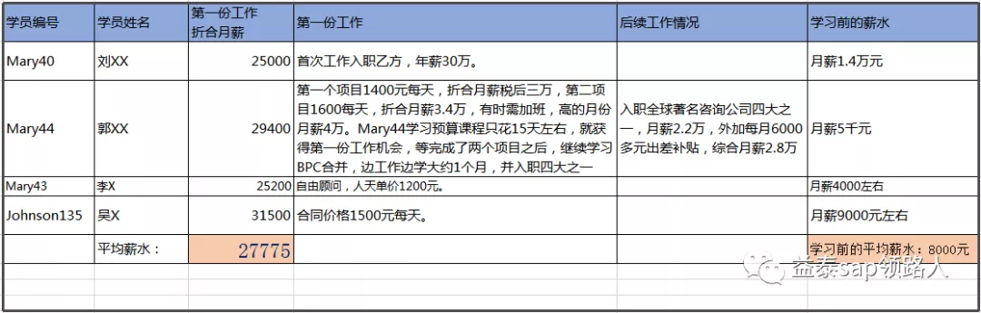 我的故事看上去也算励志吧:一个很好的朋友一直鼓励我尝试突破,不断向我传输咨询工作的价值和收益,在经历了很长一段时间的思想斗争后,我最终选择转行并毅然决然的开始学习SAP,于是朋友向我推荐了郭老师,至此,正式开始了我转型之路。
