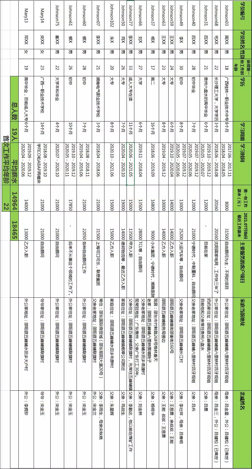 截止2021.05月前,19位来自邵阳县五峰铺镇的学员就业情况