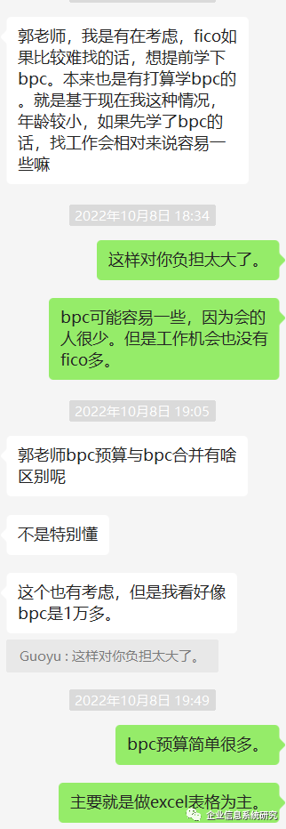 十月的面试机会还是很少。Mary87经常到我的公众号看看其他同学的学习过程,她告诉我。好像SAP BPC的同学每次面试很容易,而且薪水很好,加上SAP BPC的预算课程本身才1.5万,学习这一部分也能找工作。她提议,她可不可以学习SAPBPC?这真的是好注意,对我来说,她可以好好学习,至少这个十月份不会干等面试机会的焦虑。考虑她刚学习完毕FICO,已经支出了较多的学费,那么学习SAPBPC预算部分的,先只需要缴纳50%学费,等未来找到SAP BPC领域的工作的时候,才补上余下的SAP BPC预算部分的学费。
