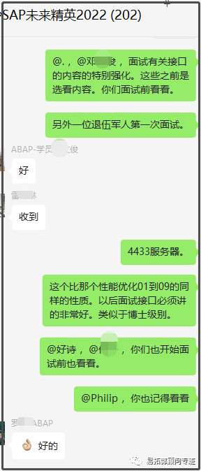 针对接口部分,我们课程系统中有非常好的课程。考虑到当前趋势,很多企业把SAP作为最后端的核心系统,外围有大量的其他系统链接,无论是学习SAP的业务模块,还是ABAP模块,都涉及到和外围系统对接的的项目实施,包括在面试中也有很多这方面的涉及,所以我们针对这种情况,专门制作了6节的和接口项目,接口开发的课程。用于ABAP学员,MM学员,SD学员,以及FICO学员在面试前观看,让他们在面临这个阶段的项目面试,或者实际项目时候,能不慌张,能自由表达得非常好。